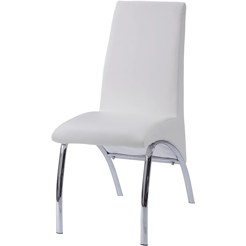 The Pervis collection has a armless side chairs that features padded seat & back in white faux leather. Also supported with metal curved legs. This collection will bring a elegant look at any dining room area and is perfect for you.