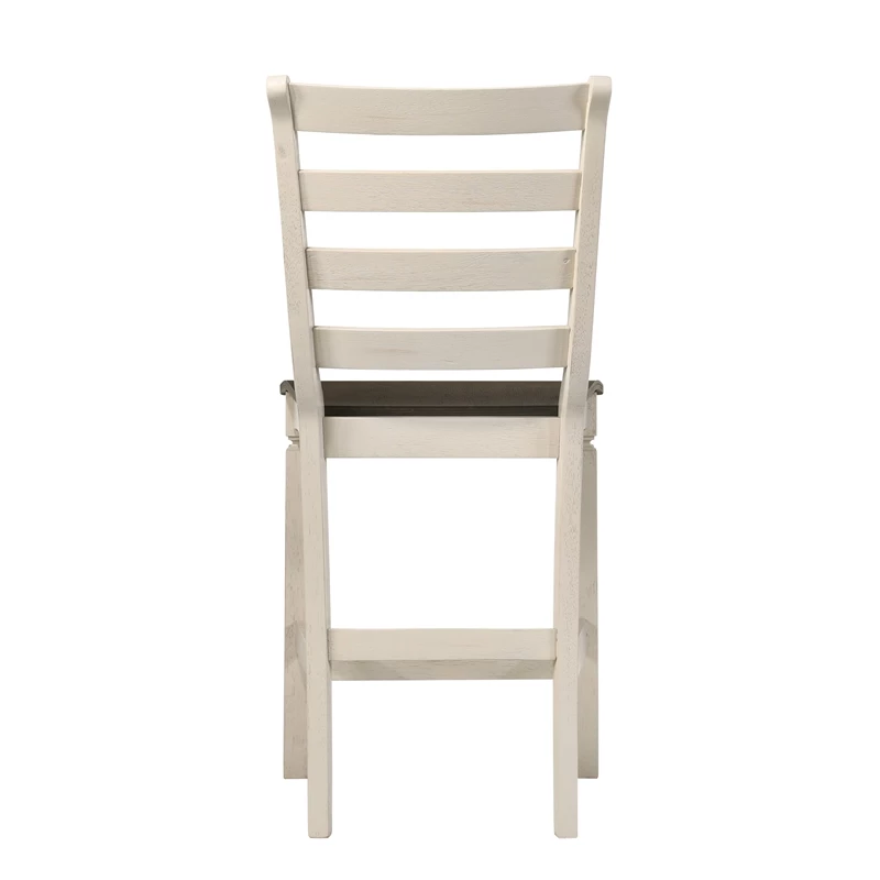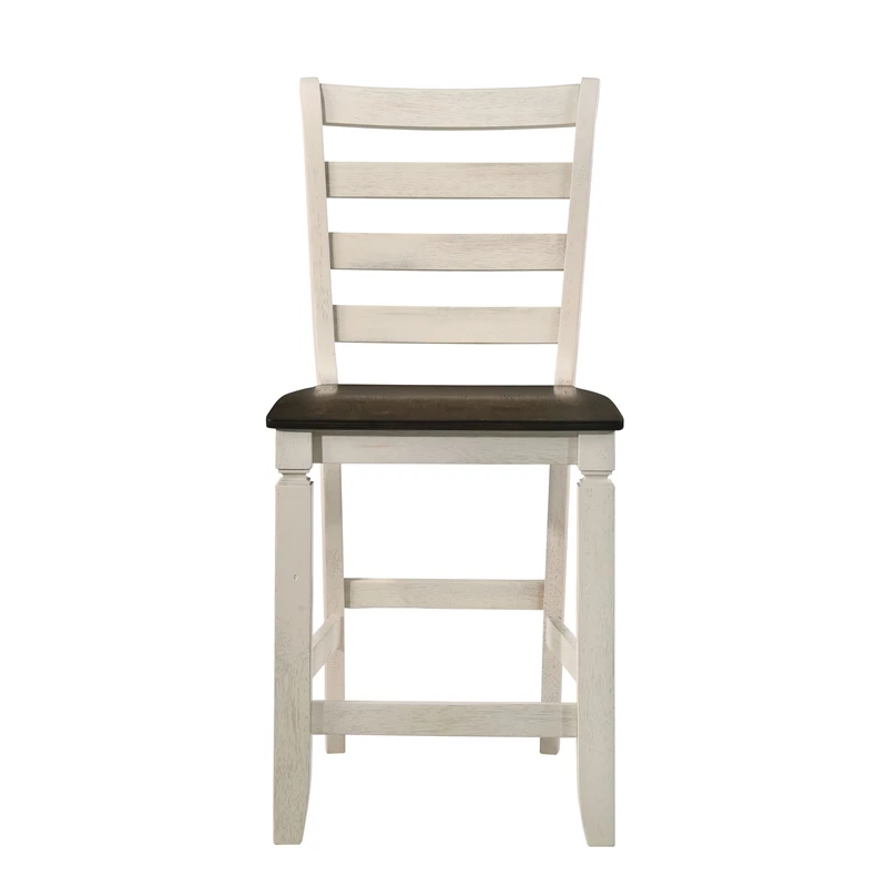 Pick the right seating for your dining room. The Tasnim Counter Height Chair provides traditional slatted backrest and footrests for a classic comfort look. Oak finish on the seat paired with antique white finished frame creates the perfect contrast. This counter height chair brings a whole new dimension to your dining space, offering a warm and welcoming atmosphere for your guests.