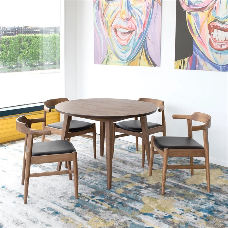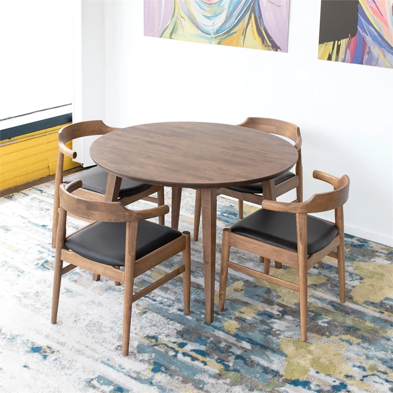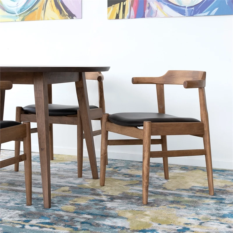 Sold as a set of 2 chairs. Give a touch of elegance to your dining room or kitchen with the Allora Mid-Century Modern Faux Leather upholstered dining chair in Black. Made of a durable Solid Wood frame and featuring a high-density foam cushion, the dining chairs present a lovely structure for additional high level of comfort and back support. Can be cleaned with a non-abrasive cleaning solution followed by a quick microfiber cloth. With little assembly needed you can quickly start entertaining with no hassle! Available in a variety of timeless colors, you’re sure to find something that matches your decor.