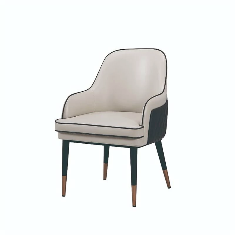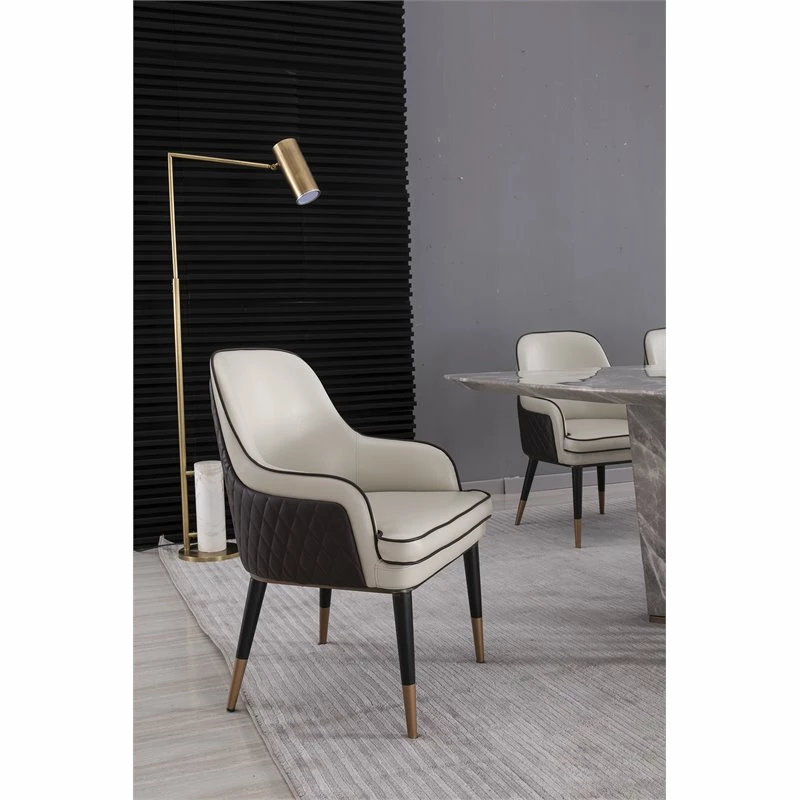 This mid century modern dining room arm chair would be a stunning addition to your dining room. With it’s beautiful two tone brown and gray faux leather and cast cap feet. You will enjoy the beauty of this dining room chair for years to come. This dining room chair is upholstered in faux leather and the frame is constructed of durable wood.