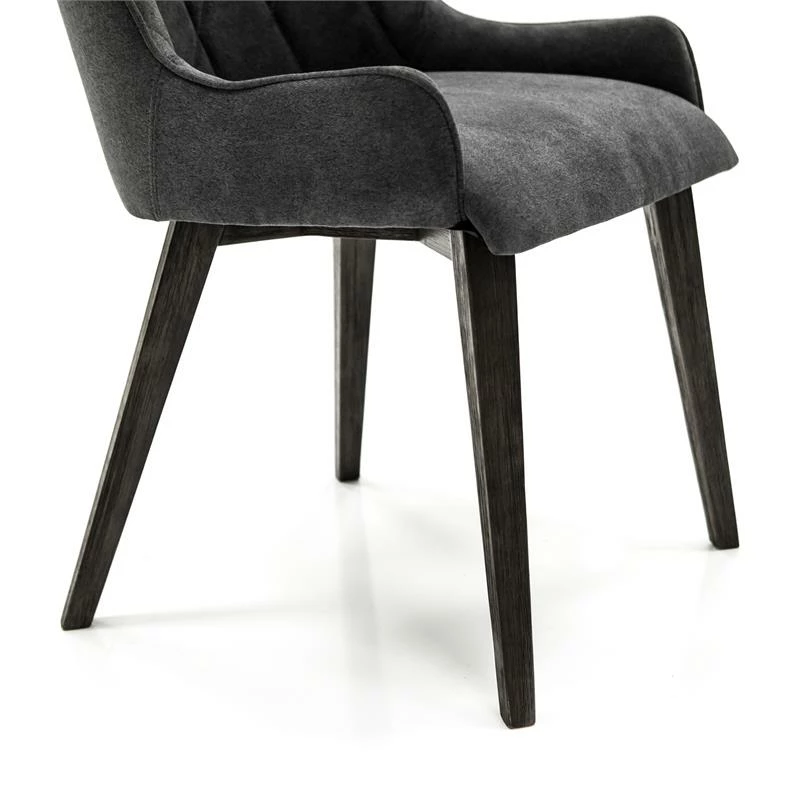 The Alana Charcoal Upholstered Dining Chair – Set of 2 features a modern slope arm and acacia legs. The Alana chairs can easily fit into any design theme depending on your preference. Pair with metal chairs or a bench for a modern farmhouse look; put 4 chairs around a glass dining table for something more contemporary. Comfortable enough to pull into your home office for a day and classy enough to seat around your formal dining space.