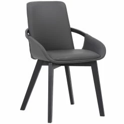 The Armen Living Greisen modern dining room chairs are the perfect furniture piece for your dining room, living room to serve as accent chairs, or desk area to serve as an office chair. The plush and thick foam-padded cushion and soft upholstery will provide you with all-day comfort. The high chair back with padded support is ideal for posture alignment and features unmatched support for days on end. The unique, durable wood frame of this product is unlike other dining room chairs, as it shapes the open bucket seat design and features black brushed wood accents that appear throughout the piece. The Greisen is available in your choice of charcoal fabric or gray faux leather upholstery.