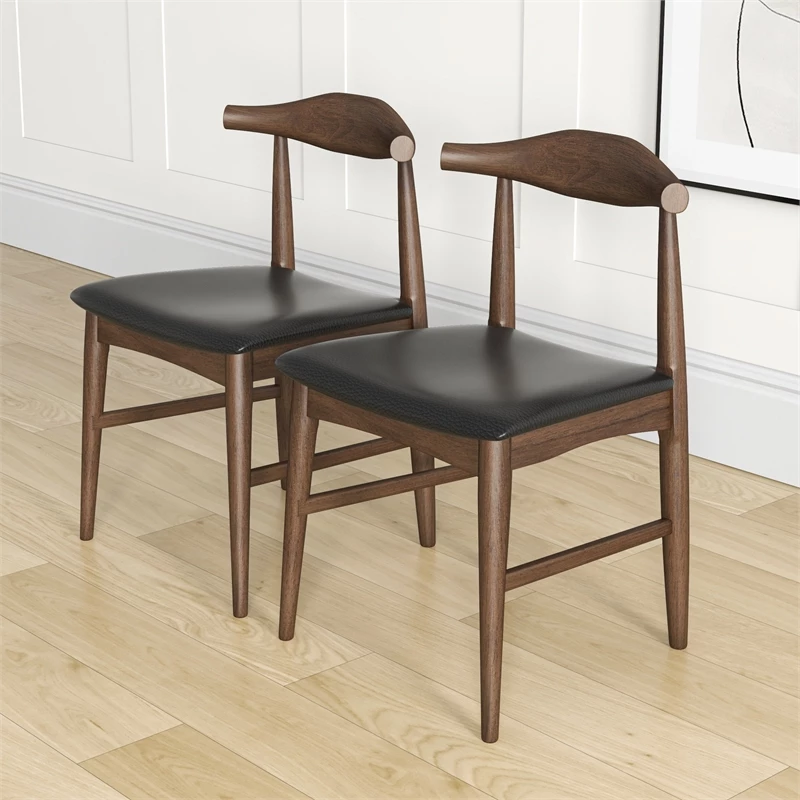 Sold as a set of 2 chairs. Give a touch of elegance to your dining room or kitchen with the Silas Mid-Century Modern Faux Leather upholstered dining chair in Black. Made of a durable Solid Wood frame and featuring a high-density foam cushion, the dining chairs present a lovely structure for additional high level of comfort and back support. Can be cleaned with a non-abrasive cleaning solution followed by a quick microfiber cloth. With little assembly needed you can quickly start entertaining with no hassle! Available in a variety of timeless colors, you’re sure to find something that matches your decor.