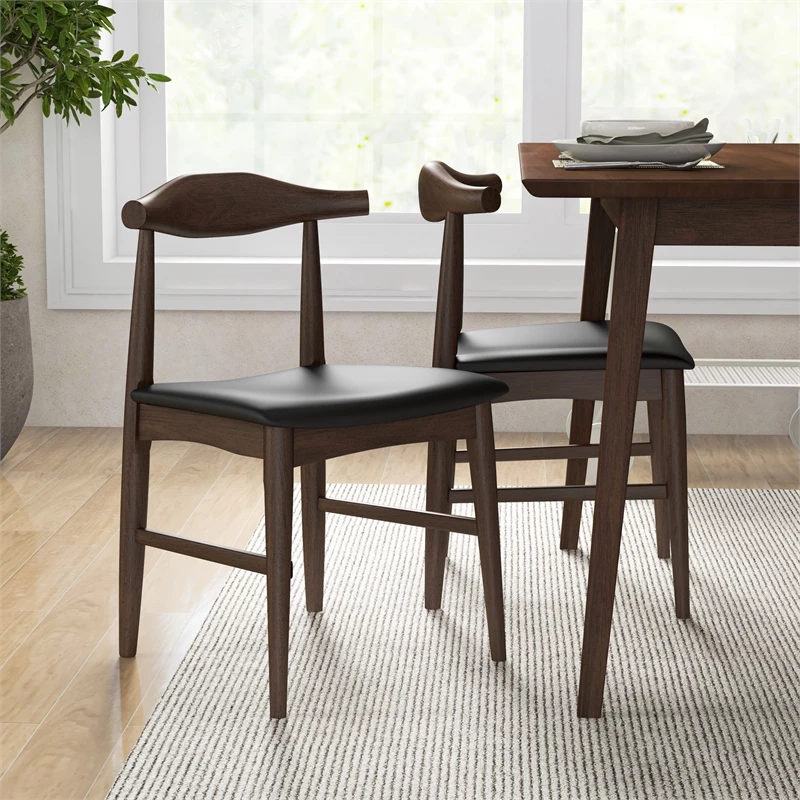 Outlet 👏 Ashcroft Buford Mid-Century Modern Faux Leather Dining Chair In Black (Set Of 2) 🧨