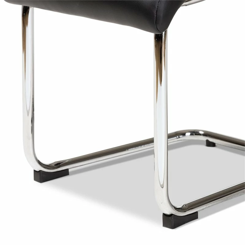 The Marlys dining chair has the retro look you’ve been searching for. The mid-century modern-inspired design is timeless, with the clean lines and gentle curves of the chair. The Marlys is foam-padded and upholstered in black faux-leather. The chair features chrome-finished, bent legs for a unique look. The slim, gently curved chair back of the Marlys encourages hours of comfortable seating. Give your dining room a retro vibe with this chair, or add it to your reception area or other shared spaces for extra flair. Made in China, the Marlys requires assembly.