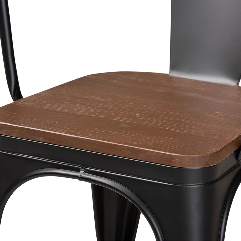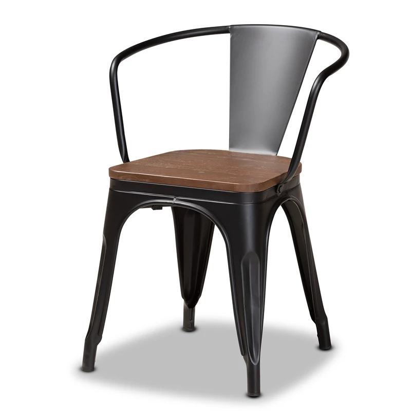 Give your dining room a sleek, industrial ambiance with the Ryland dining chair. Made in China, this set includes four chairs comprised of a metal frame fitted with a flat walnut brown finished wood seat. Its curved backrest forms convenient armrests while its open design allows light to flow more easily throughout the room. The Ryland will arrive fully assembled and is set on top of angled legs for excellent stability and support. The robust style and smooth comfort of the Ryland dining chair are sure to elevate any dining experience.