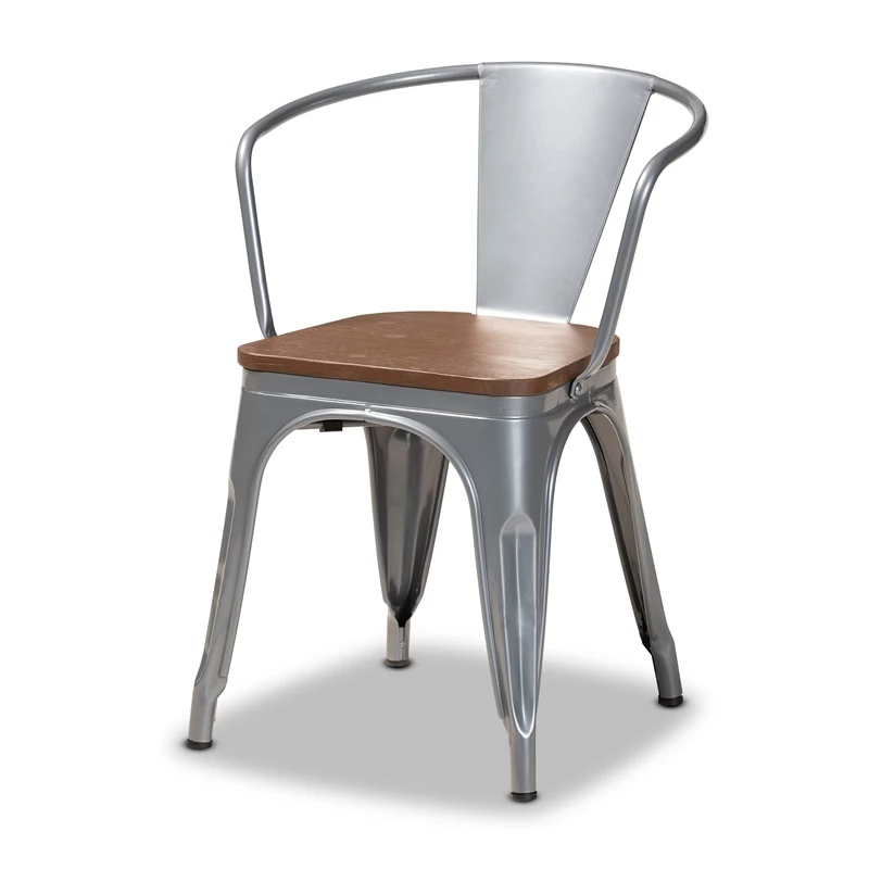 Give your dining room a sleek, industrial ambiance with the Ryland dining chair. Made in China, this set includes four chairs comprised of a metal frame fitted with a flat walnut brown finished wood seat. Its curved backrest forms convenient armrests while its open design allows light to flow more easily throughout the room. The Ryland will arrive fully assembled and is set on top of angled legs for excellent stability and support. The robust style and smooth comfort of the Ryland dining chair are sure to elevate any dining experience.