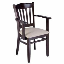 The Hybrid Arm Chair in Walnut is sophisticated and versatile. Made from solid beech wood with a slatted back and cream seat cushion which is comfortable and elegant. This chair makes a perfect addition to a Craftsman-style kitchen or dining room. Its classic design works well in both casual and formal dining spaces and comes fully assembled.