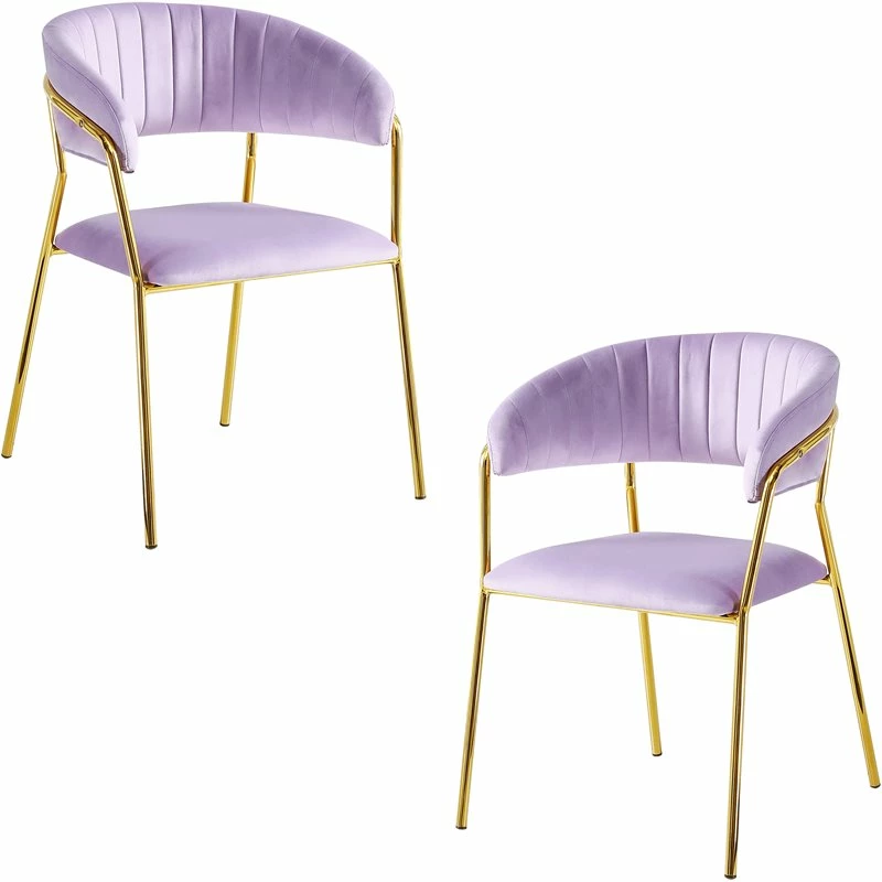 Entertain your guest with this beautiful 2-piece side chairs! Velour fabric was used to upholster this unique chair. The gold finish tops off the regal look.