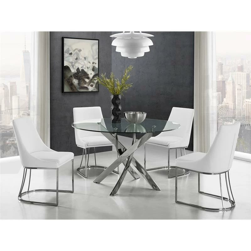 The Creek dining chair in white pu-leather with stainless steel base features clean, modern lines adding a sophisticated look and edge to any room. Our Creek dining chair is constructed using top commercial grade materials with faux leather, stainless steel, pu – polyurethane, mdf with exceptional quality that are made to last.