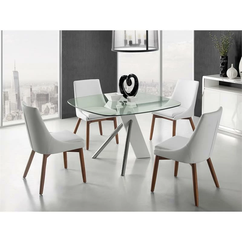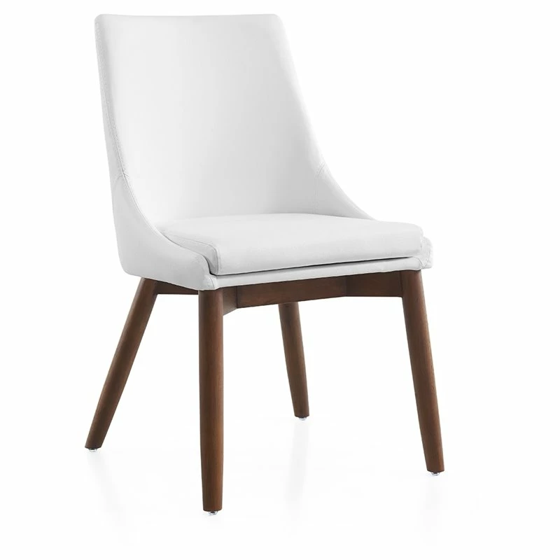 The Creek dining chair in white pu-leather with walnut veneer base features clean, modern lines adding a sophisticated look and edge to any room. Our Creek dining chair is constructed using top commercial grade materials with faux leather, pu – polyurethane, mdf, walnut veneer with exceptional quality that are made to last.