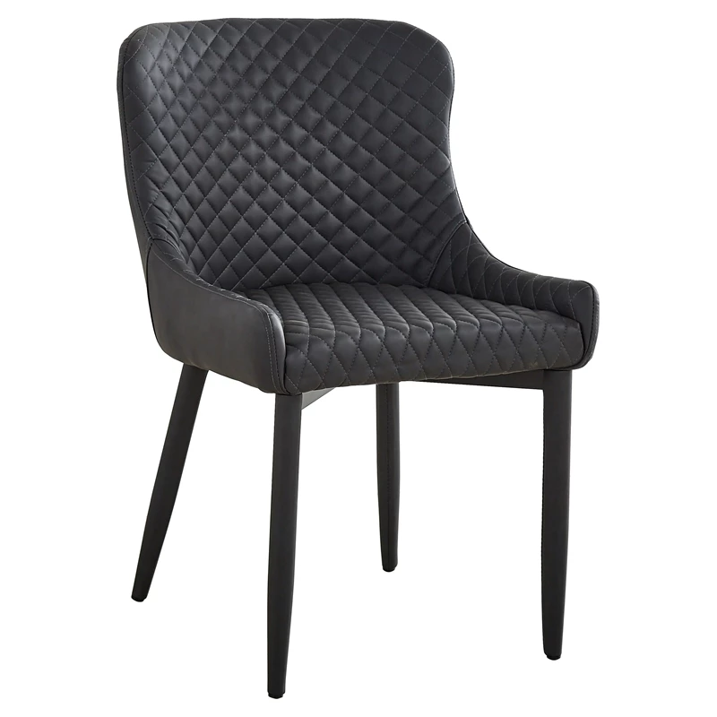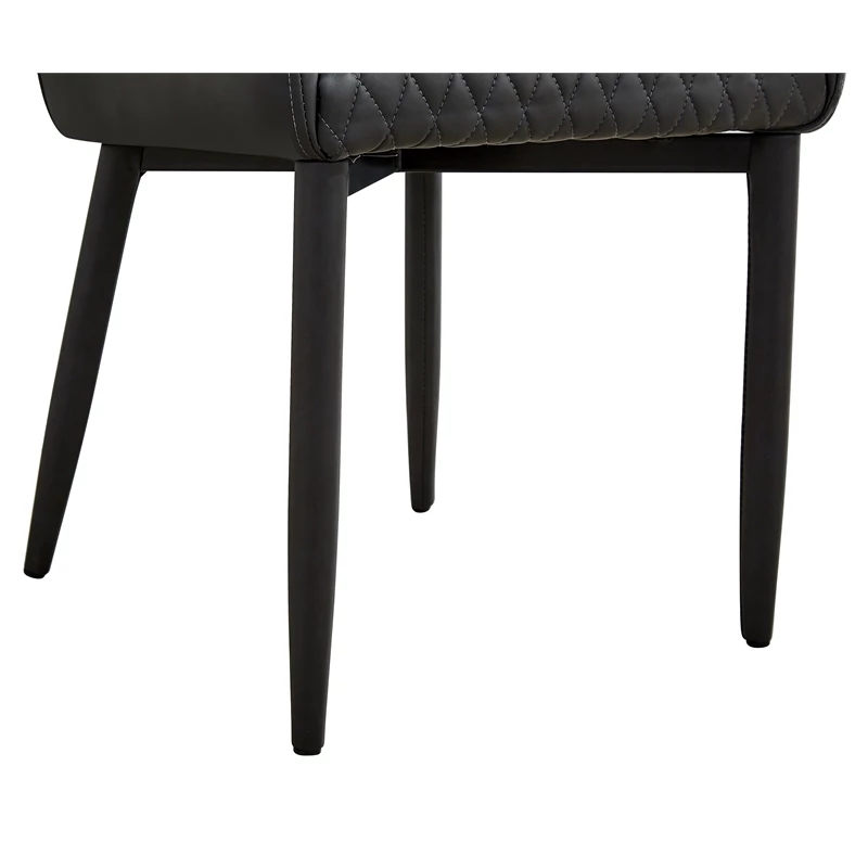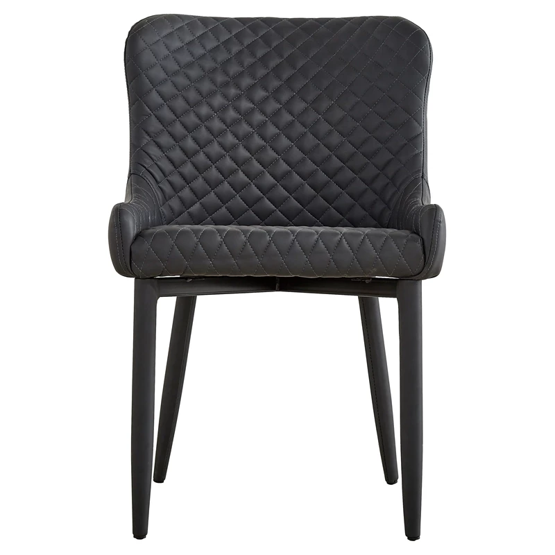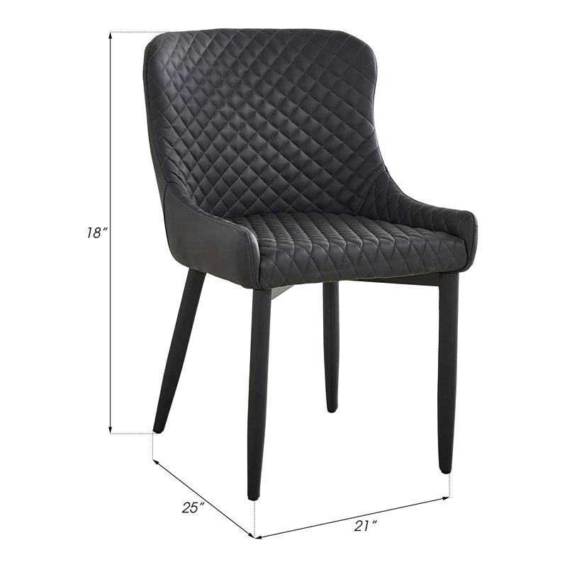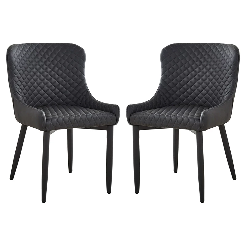 This set of two dark gray faux leather dining chairs are something to remember. With all-over tufting, the cushioned seating and low profile armrests ensure an incredible dining experience and stylish display.