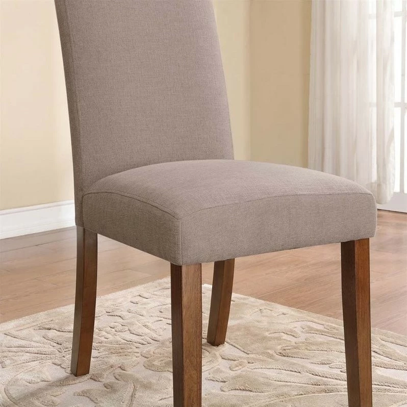 Give your kitchen, dining room, or living room a quick makeover with the set of 2 Linen Parsons Chairs. The linen chairs’ seat back, seat front, and chair seat are fully upholstered in a beautiful taupe color. Use as versatile stand-alone pieces for additional seating options in your home, or combine it with the Dark Pine Trestle Table for a complete, matching dining set solution.