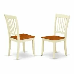 This eye-catching danbury dining room chair offers a modern look. Kitchen dining chairs come with a solid wood seat to fit personal preference and perfect design. Stylish dining chair features curved front legs. Elegant kitchen chairs feature 7 vertical slats to give any dining area a touch of class and sophistication. Finished in elegant two tone buttermilk and cherry color.