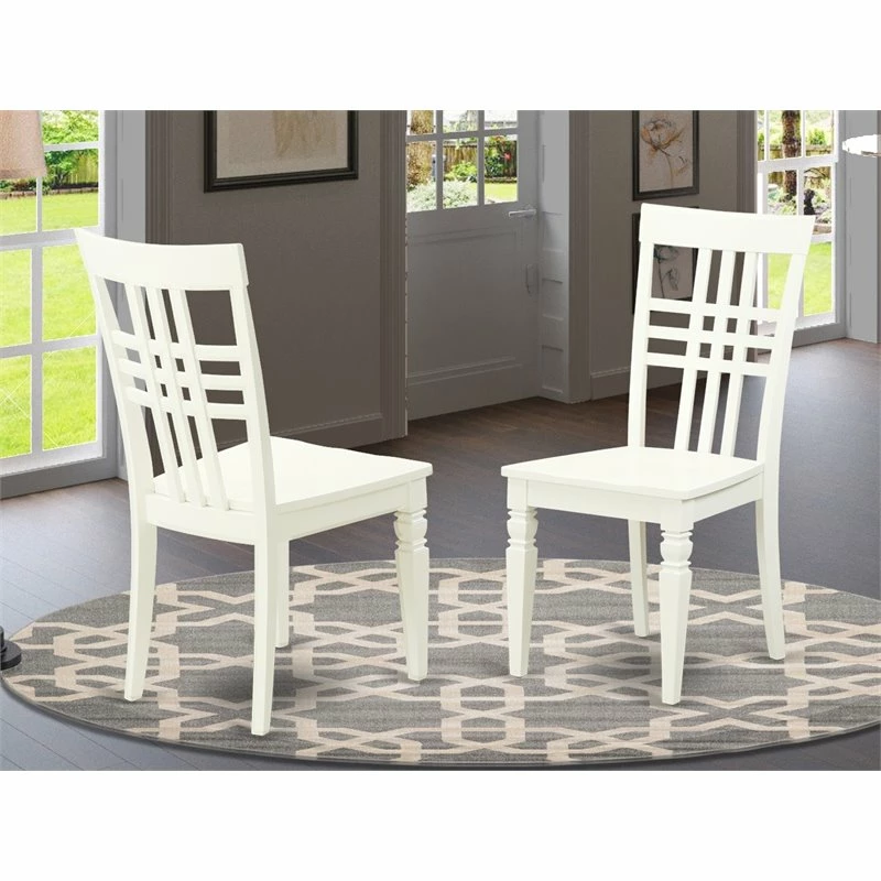 Contemporary design emphasize dining chair lovely, refined contour arching down into the flooring. It provides quality design with a touch of class to enhance fascinating appeal to any kitchen space or dining area. It has a sturdy construction with Asian hardwood finished in warm linen white finish. The dining room feature stunning backs along with wood seat. Exceptionally high quality dining area chairs composed of all very solid Asian wood. No mdf, heat treated wood, particle aboard or veneer used. Chair dimensions: length 17.5; width 18.5; height 38.5.