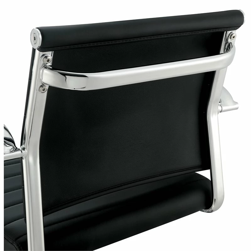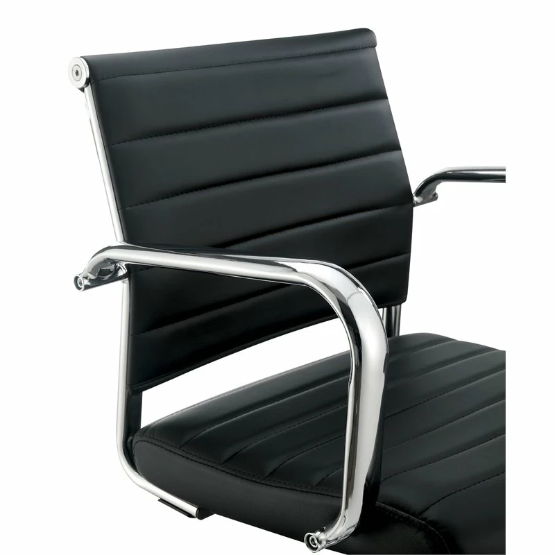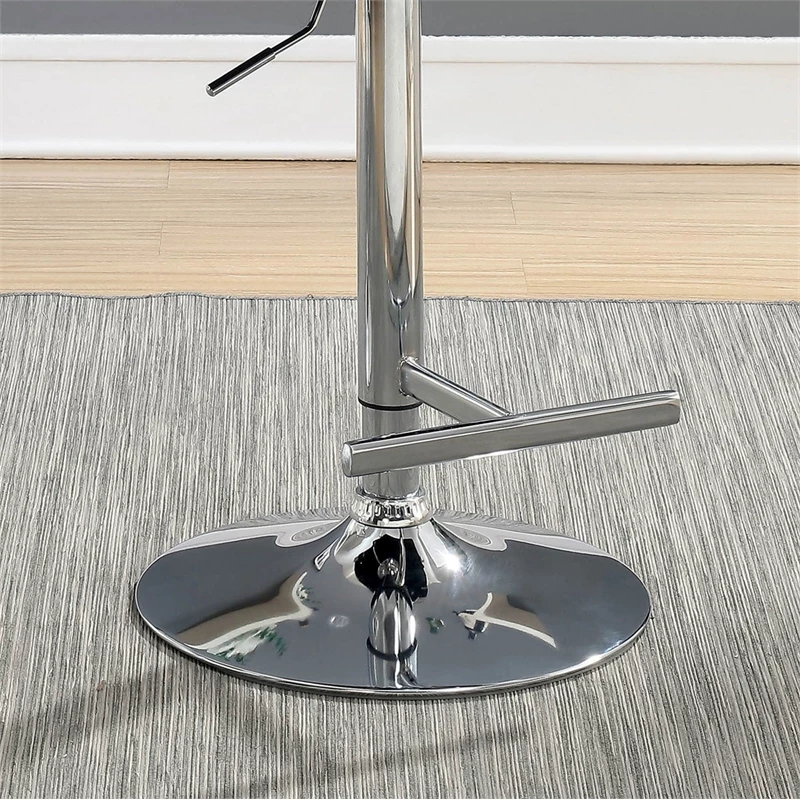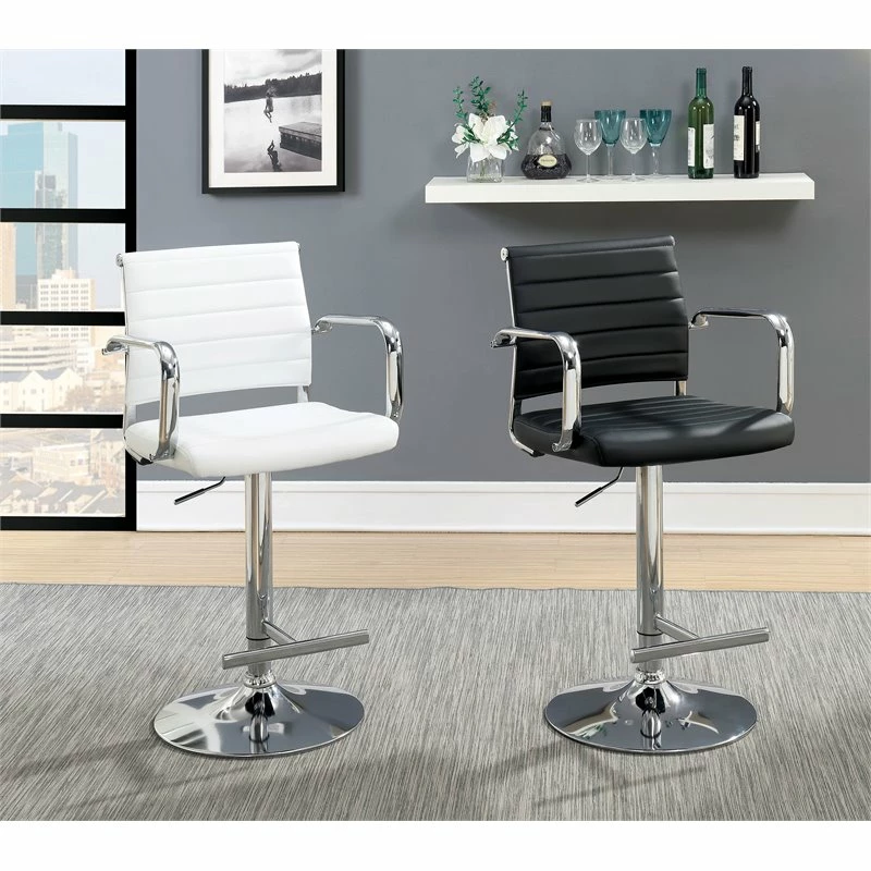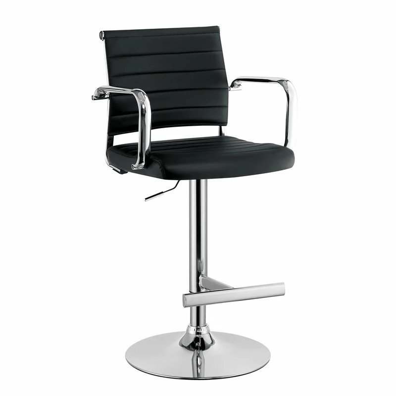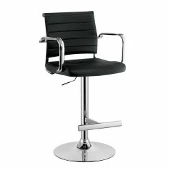 Style your dining room with this Bar Stool. The height adjustable design showcases a sophisticated ribbed faux leather back rest, contoured seat and glimmering curved arms. Available in black finish to elevate your unique style.