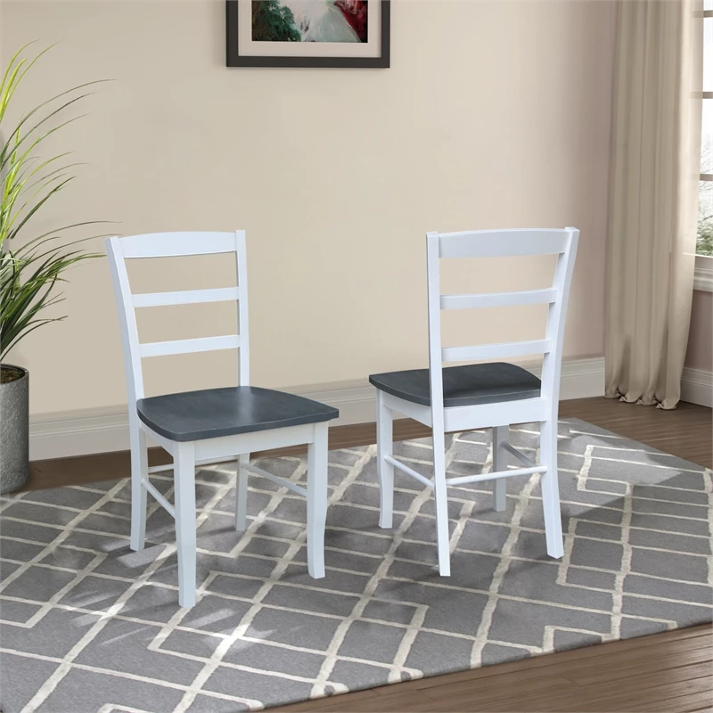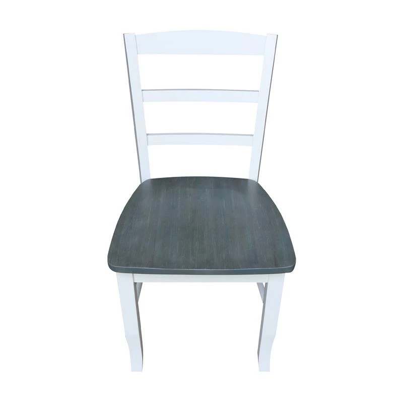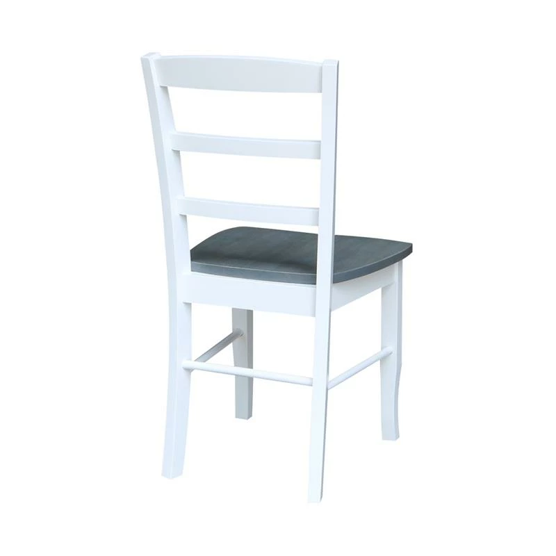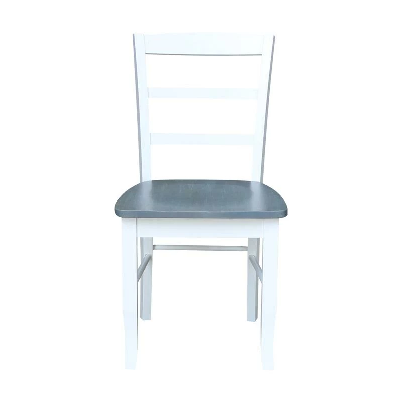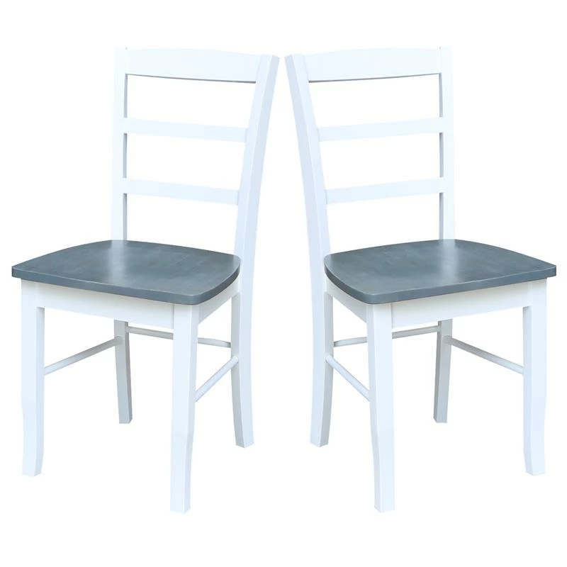 International Concepts home furniture is for those who appreciate high quality, wood furniture with a traditional and elegant look. These beautifully designed Madrid Ladderback Dining Chairs constructed in solid wood in a White/Heather Gray finish, will easily complement any decor in your home. This set of 2 chairs would be a perfect addition to any table in your kitchen or dining area.