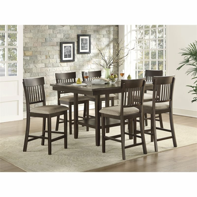 Sharing a meal with friends and family is made easy with the Balin Collection. Designed for maximum efficiency and personal decorative preference, each feature of the collection lends individual character to the overall design. The vertical slat-back chair features brown linen-like fabric that covers the padded seat. The mindy veneer of the chair is finished in dark brown for neutral accent to your casual dining space.