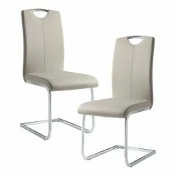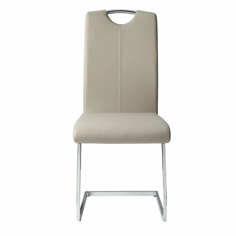 Sleek contemporary styling provides the platform which you will create your casual dining space in the Glissand Collection. The continuous chrome-finished metal base of this side chair rises to support gray-taupe faux leather seats with understated vertical stitching and a chrome chair top accent that provides additional visual interest.