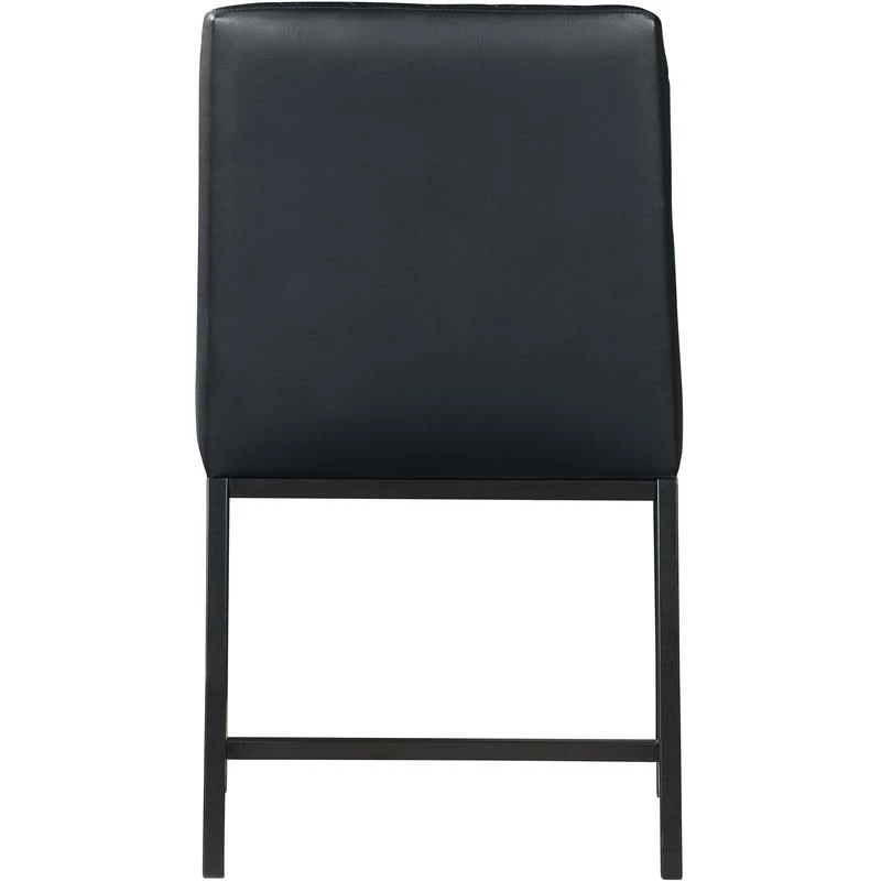Give your dining room a revamp with this Bryce Faux Leather Dining Chair from Meridian Furniture. This handsome chair features an armless design with heavily padded seat and back cushions, ensuring that guests stay comfortable all the way through dessert. The back is quilted for added aesthetic appeal, and it’s upholstered in black faux leather for the luxury look of leather without the maintenance requirements. A metal frame and matte black metal legs complete the look and provide sturdy support.