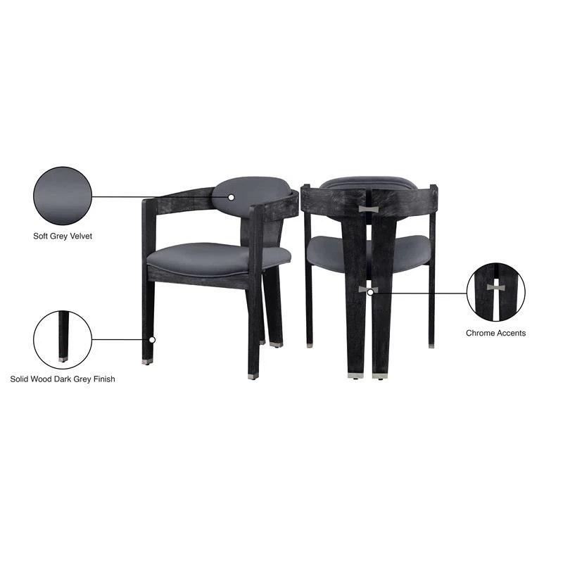 Elegant and eye-catching, the stunning Grey Velvet Vantage Dining Chair from Meridian Furniture is the perfect addition to any space.