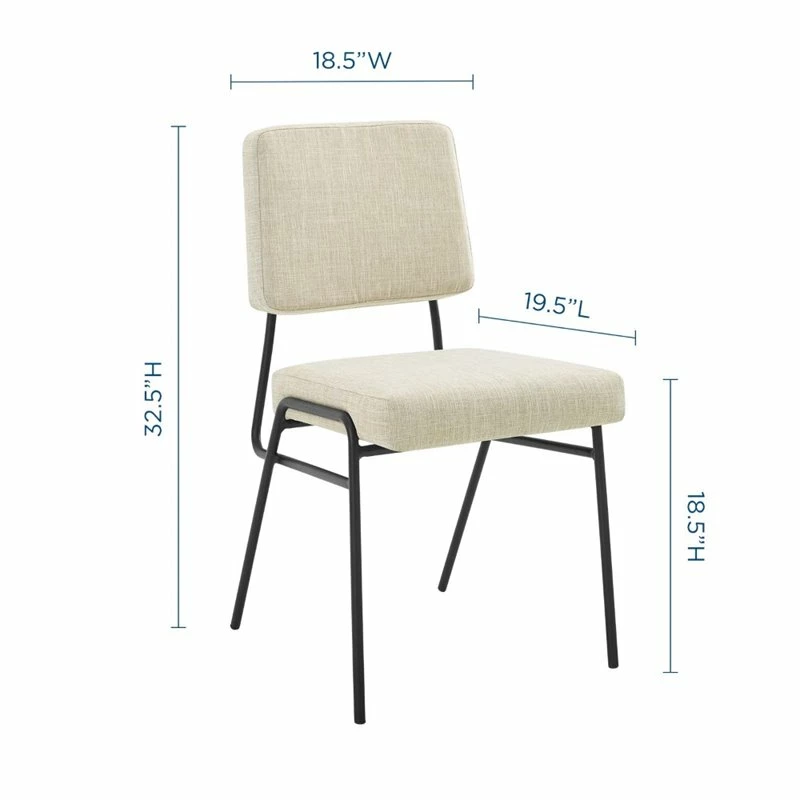 The blended aesthetics of mid-century modern style and the elegance of retro glamour are channeled to create the striking Craft Fabric Upholstered Dining Side Chair. Featuring dual densely padded foam cushions covered in soft and durable polyester fabric upholstery, this dining chair is a luxurious seating experience with an open, breathable design. The Craft Accent Chair sits on an eye-catching matte black stainless steel frame with flared rear legs and non marking foot caps elevating your dining room, lounge room, and office decor.