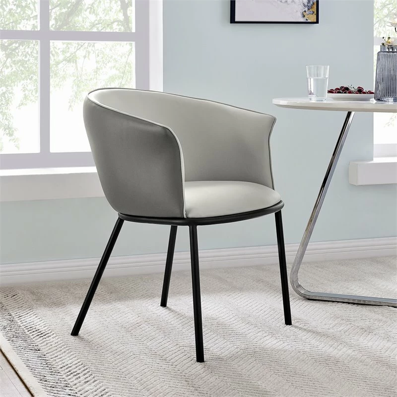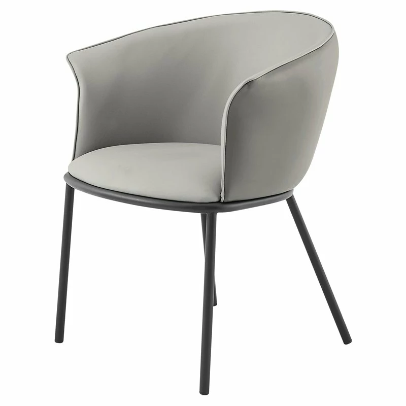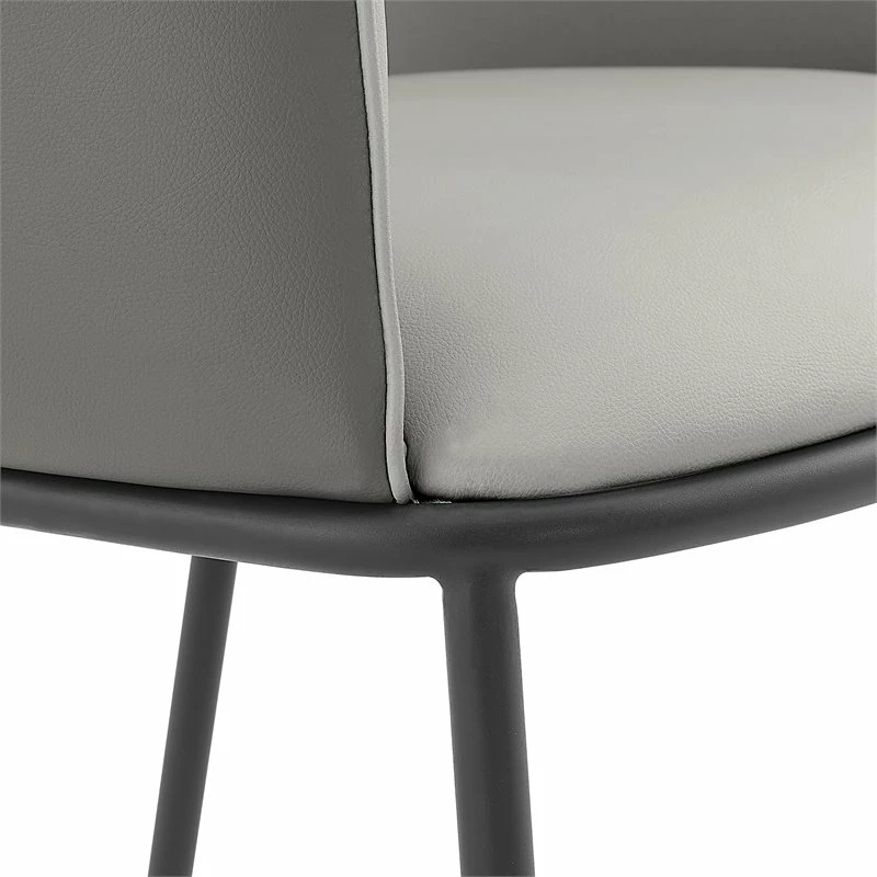 Bringing back 80’s barrel-back contour, the latest Seymor chair offers sculpted lines with duo color tone. Simple, black painted steel legs complete its feminine appeal. Some assembly required. Available in Gray duo-tone.