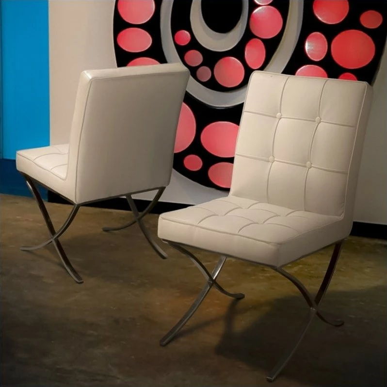 Sublime modern elegance is captured in the simple yet stylish Esperanza White Leather Dining Chairs (Set of 2). Also suits any bedroom or living room space.