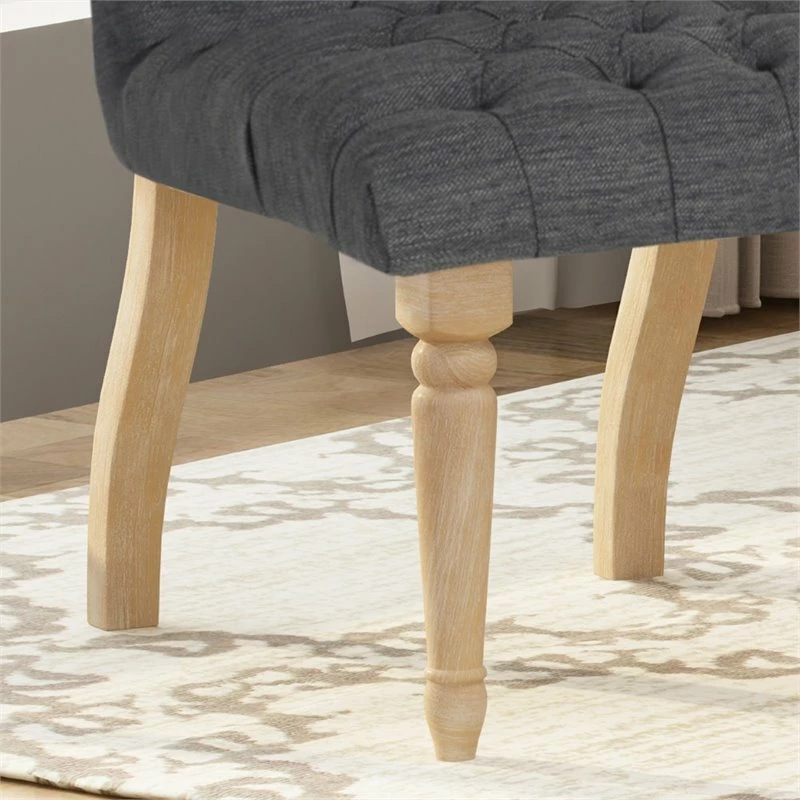 Brighten your indoor atmosphere in vintage charm with our diamond stitch dining chair. Its distressed frame and button tufted seating not only offers stability but it also blends with most décor. From exquisitely carved legs to its gently curved design, our dining chair will instantly uplift the ambiance of your kitchen or dining room with a touch of elegance. With just a simple addition, our dining chair will transform your décor into a masterpiece that is worthy of the most sophisticated. TRADITIONAL INSPIRATION: This dining chair brings vintage inspiration to your dining set with its distressed finish and simple design. Including beautifully carved legs and a gently curved backrest, this chair offers a timeless atmosphere for any interior space. BUTTON TUFTED DIAMOND STITCH: The button tufted stitching in the backrest and seat offers an extra touch of sophistication that support a traditional style. The diamond stitch pattern adds a bit of texture without sacrificing any comfort. RUBBERWOOD LEGS: Our environmentally-friendly wood not only offers plenty of durability, but it also gives this piece a beautiful natural-grain look. Combined with a gorgeous finish, this wood will truly stand out in any room. DISTRESSED FINISH: The frame of this chair is finished with a distressed wash, emphasizing its vintage look. The brushed coating provides a hand-crafted touch to this dining chair, blending seamlessly with any décor. ASSEMBLY REQUIRED: Some assembly is required for this chair set. All of the instructions and tools needed for assembly are included. This comes as a set of two.
