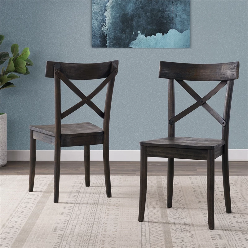 The Picket House Furnishings Calhoun X-Back Wooden Side Chair Set will pair perfectly with your Calhoun dining tables! This set includes two, x-back chairs that add a little extra flair to this set. The chairs feature a rustic design in a dark brown finish.