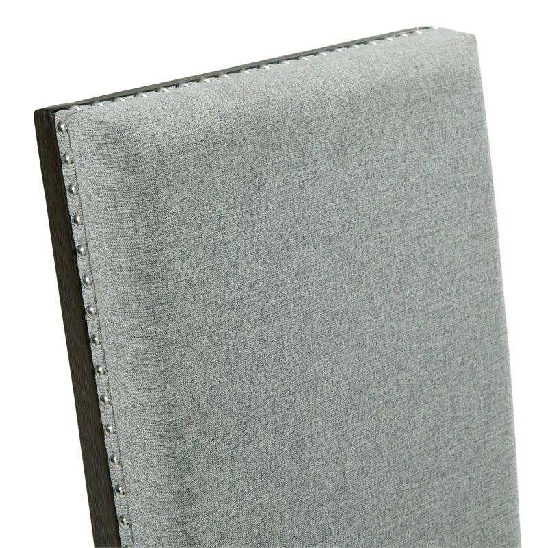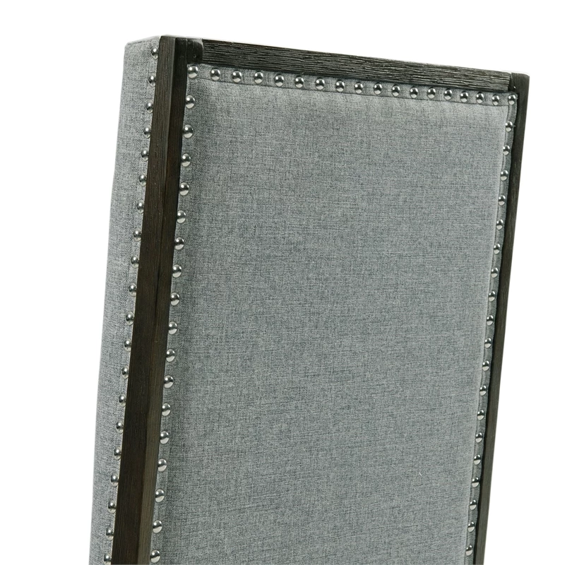 The Picket House Furnishings Holden Standard Height Arm Chair Set in going to look fantastic in your home! This set comes with two, dining room chairs. These chairs are upholstered in a gray fabric, that pairs beautifully with the black, wire brush finish on the legs and arms. Chrome nail head trim, outlines the edges of the chairs, instantly adding extra flair to this already stylish pair. The solid chair back is classic in design and will provide hours of comfort thanks to its foam cushioning. Add these stunning chairs to your dining table today for a look you’ll love day after day!