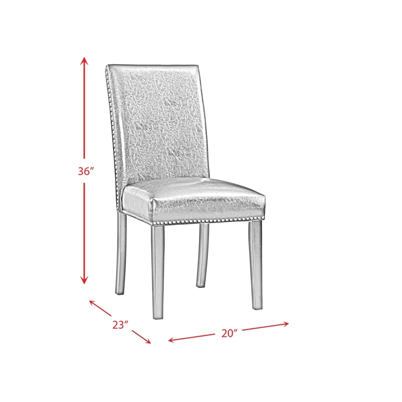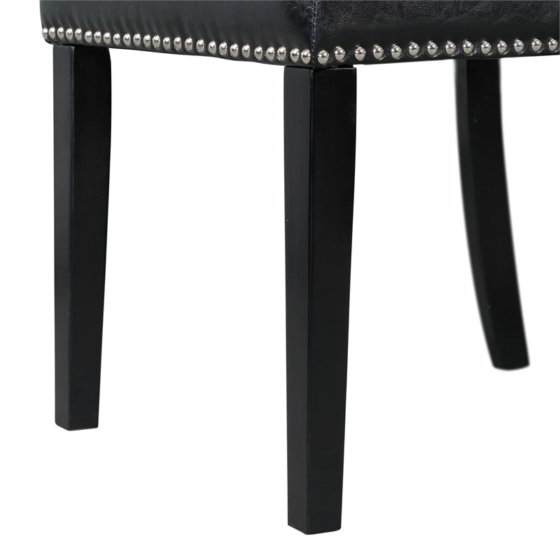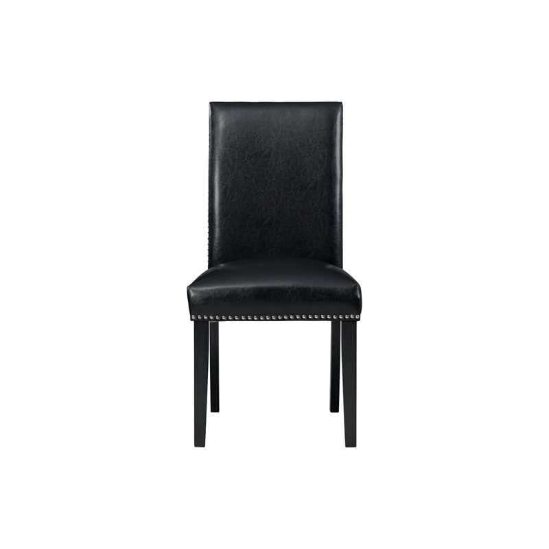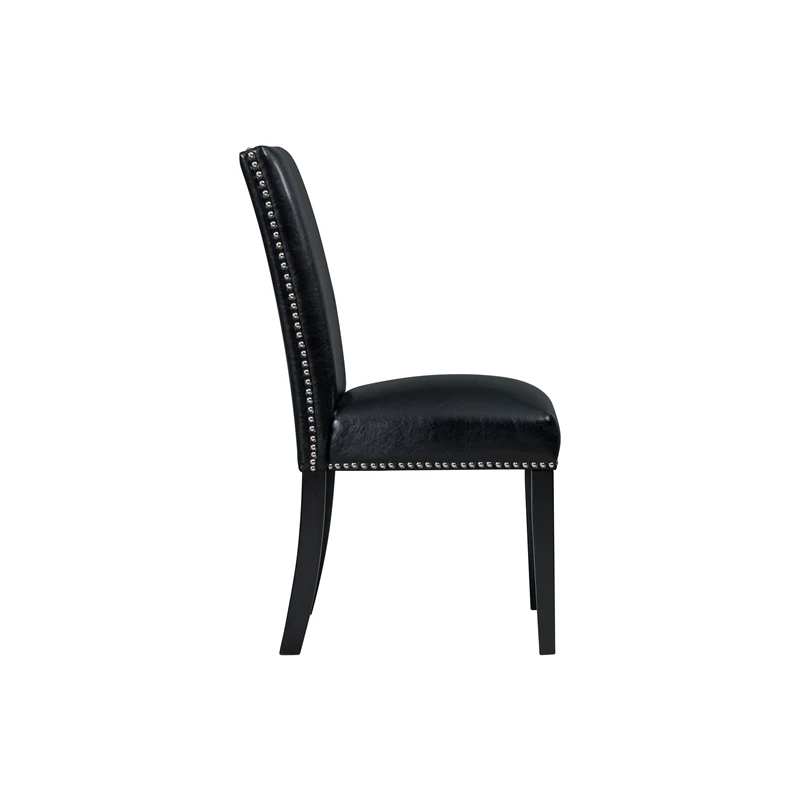 The Picket House Furnishings Pia Faux Leather Dining Side Chair Set will bring stylish character to your dining room. This set comes with two fully upholstered side chairs, featuring a tall chair back. Black, faux leather beautifully wraps both chairs and is simple to clean. Polished, chrome nail head trim lines the outer edges of each chair for a chic flair. Upgrade your dining set by switching out your old chairs to the stylish Pia Faux Leather Dining Side Chairs.