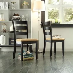 Hot Sale โ๏ธ INSPIRE Q 16.53″ Ladder Back Wood Dining Chair In Black/Beige (Set Of 2) ๐