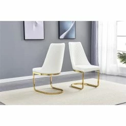 Best Sale ❤️ Maklaine Sleek White Faux Leather Side Chairs With Gold Chrome Base (Set Of 2) 🤩