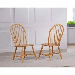 Hot Sale โ Sunset Trading Oak Selections 18″ Wood Windsor Dining Chair In Oak (Set Of 2) โ