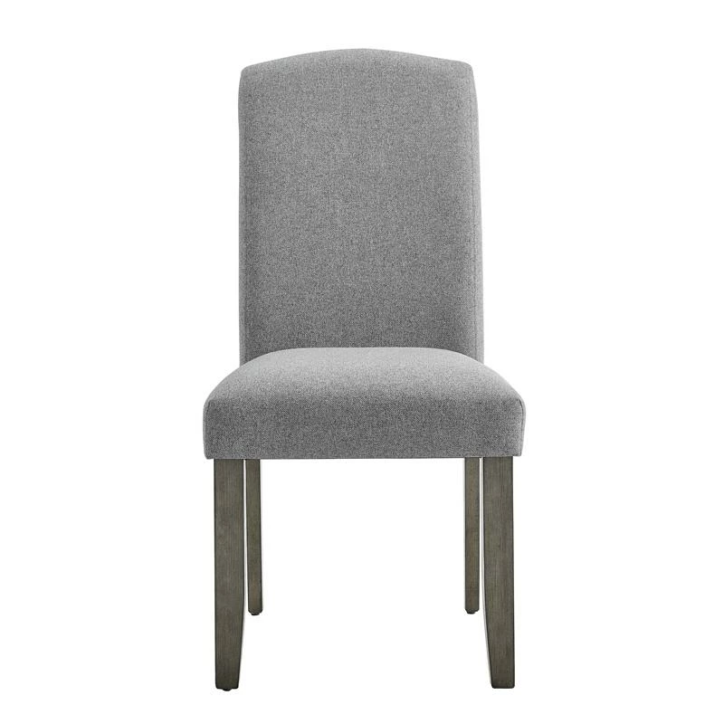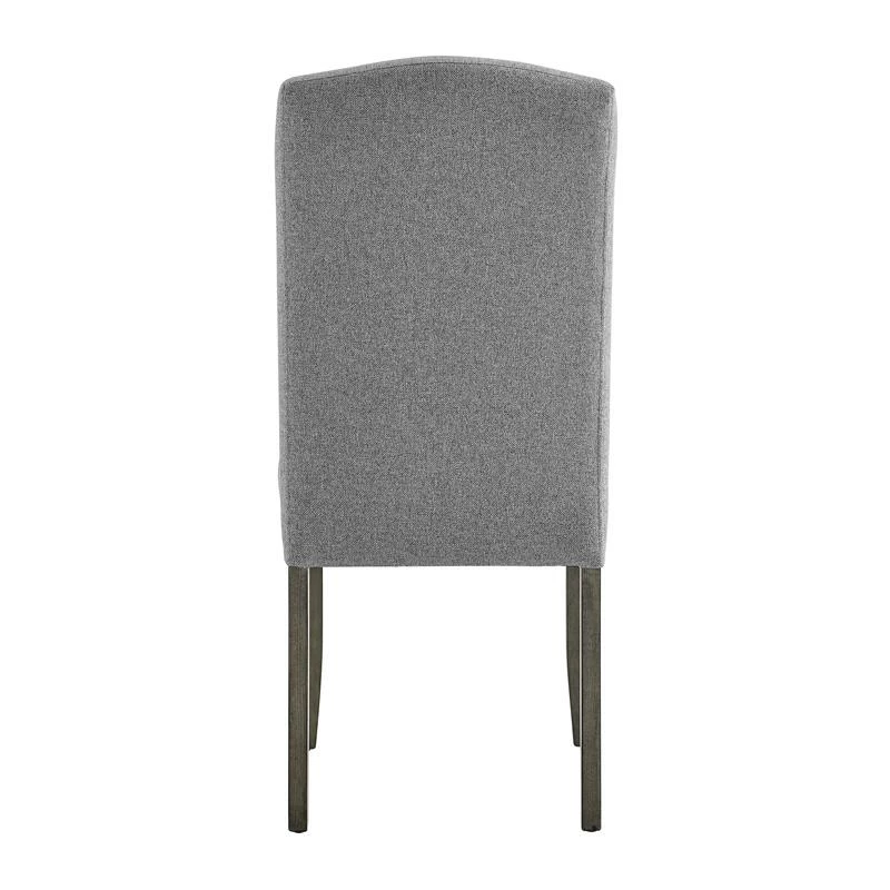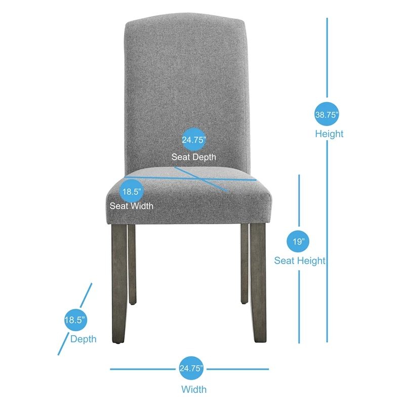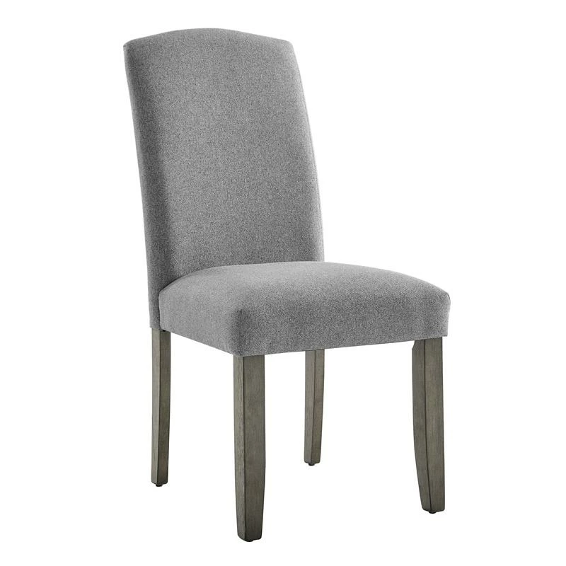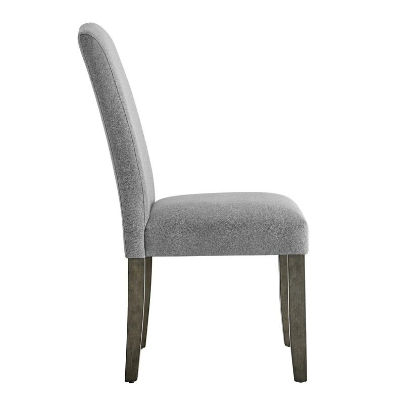 Transitionally styled and upholstered for comfort, the Emily Side Chair offers fashion-neutral styling. The tapered, solid wood legs feature a mossy grey finish offering a gentle contrast to the gray polyester fabric that is both durable and easy to clean. The arched crown back offers an elegant touch that works well in casual or more sophisticated settings. Your purchase includes two dining side chairs.