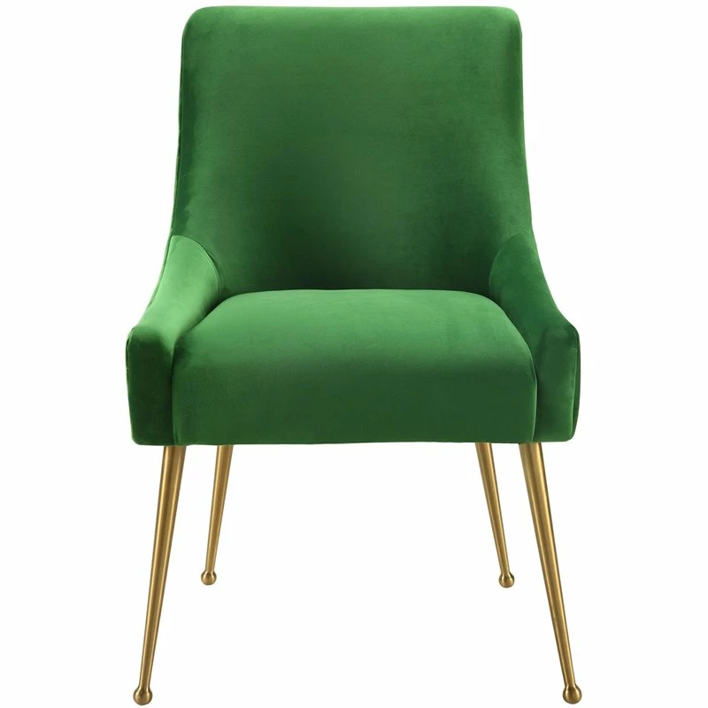 Sit pretty in this sumptuous yet durable velvet chair. The Beatrix dazzles as a dining chair or as an accent piece. Available in green, grey or navy with fab gold stainless steel legs and a matching handle on the back. Prop it into any room for a luxe, glamour effect.