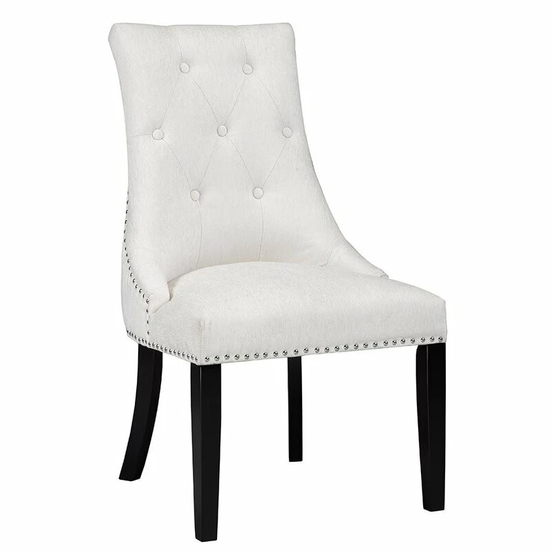 Set of 2. This chair makes a stylish addition to any space. Perfect for any decor with low profile arms and diamond button tufted back. Durable as well as comfortable and stylish. Richly upholstered in beige fabric.